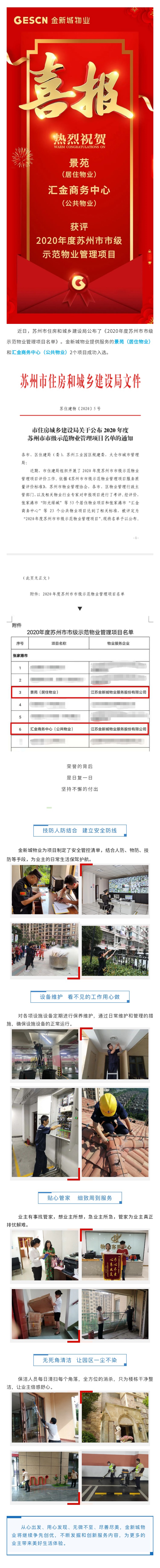 金新城物业两项目获评“2020年度苏州市市级示范物业管理项目”