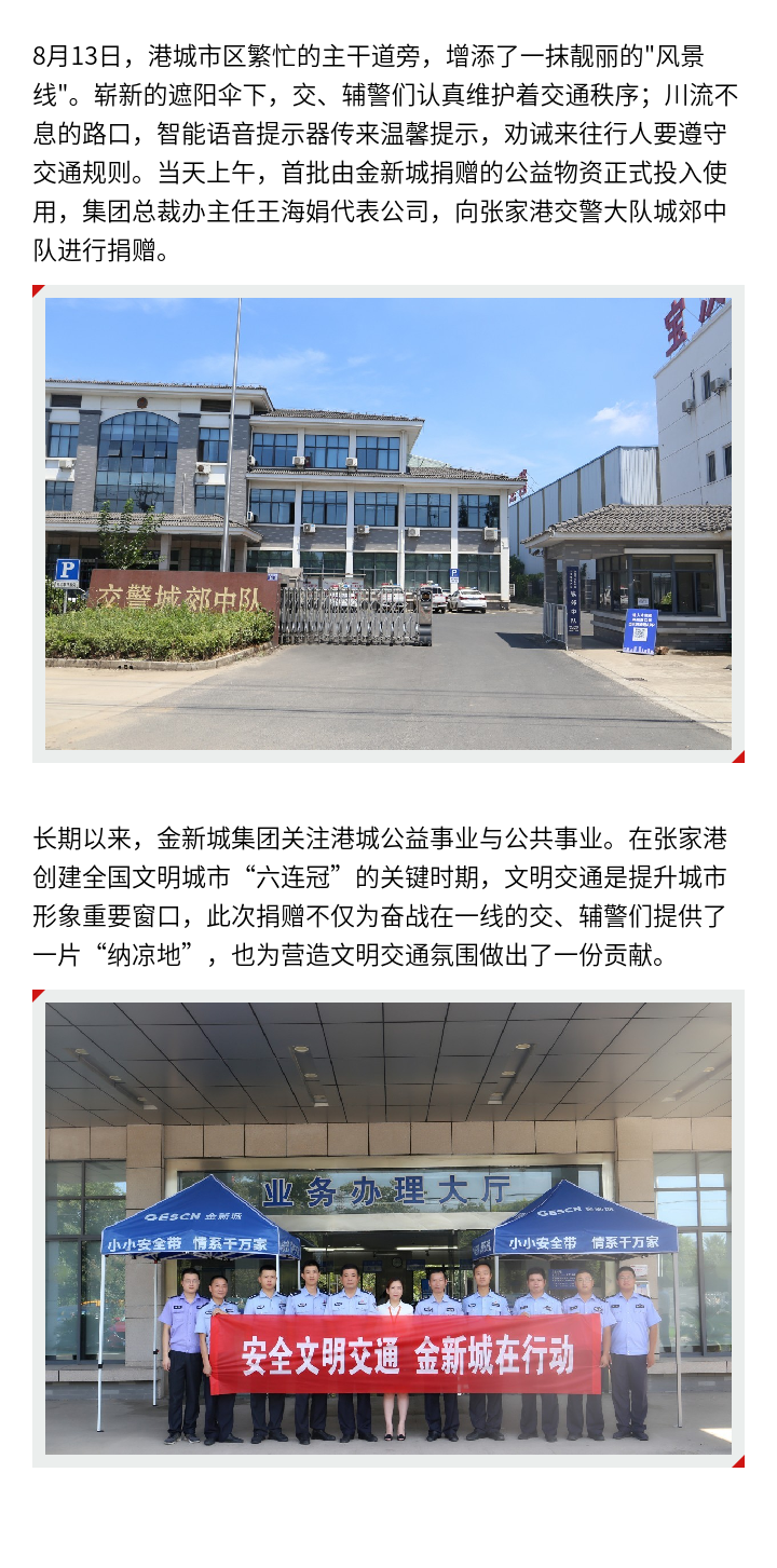 助力文明交通 金新城捐赠公益物资